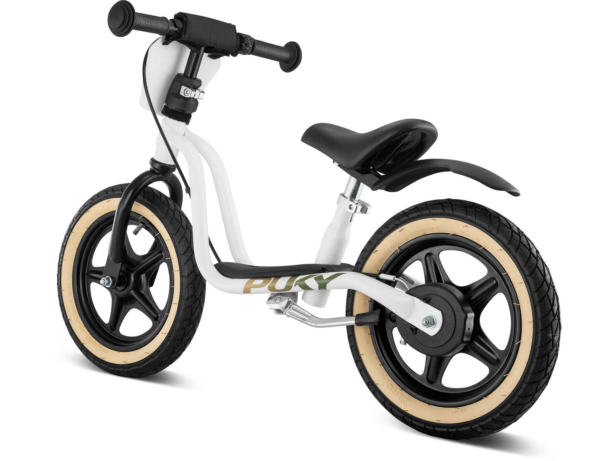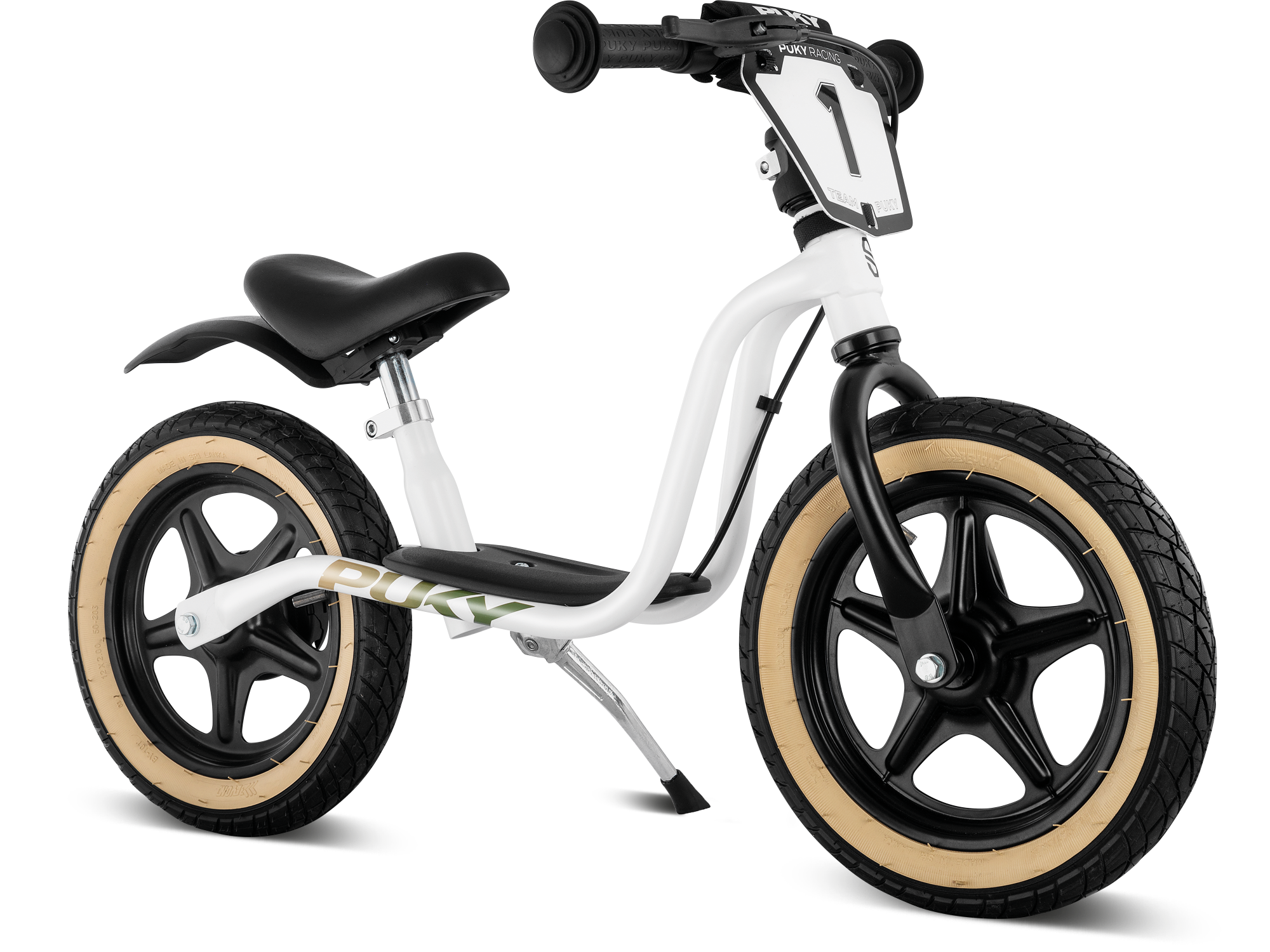 Top performance for small racers: The PUKY LR 1L BR SUPERMOTO with brake The PUKY LR 1L BR SUPERMOTO with brake really gets little racers going. Whether a short race among friends or cruising with mom and dad. With the cool look, the numberplate, the rear mudguard and the wheels with colored sidewall, this LR 1L is certainly the most ambitious PUKY wheel of the LR 1 family. The pneumatic tires provide a lot of comfort and excellent grip. Otherwise, the LR 1L BR SUPERMOTO with brake has all the features that have made our LR 1L wheel a legend. It features a lower step-in with footboard, a durable frame made of environmentally friendly recycled steel and our banana saddle for optimal power transmission. The saddle and handlebars are height-adjustable so the wheel can grow with its little owners. Of course, the LR 1L BR SUPERMOTO handlebars and wheels have ball bearings and the frame and rims are covered with our robust powder coating. The safety package of safety handlebar grips and handlebar pads are of course also on board. We have also dispensed with a steering lock on the LR 1L BR SUPERMOTO so that the handlebars lie flat on the ground in the event of a fall. This reduces the risk of injury enormously. The practical side stand can be easily folded out and the wheel properly parked.
