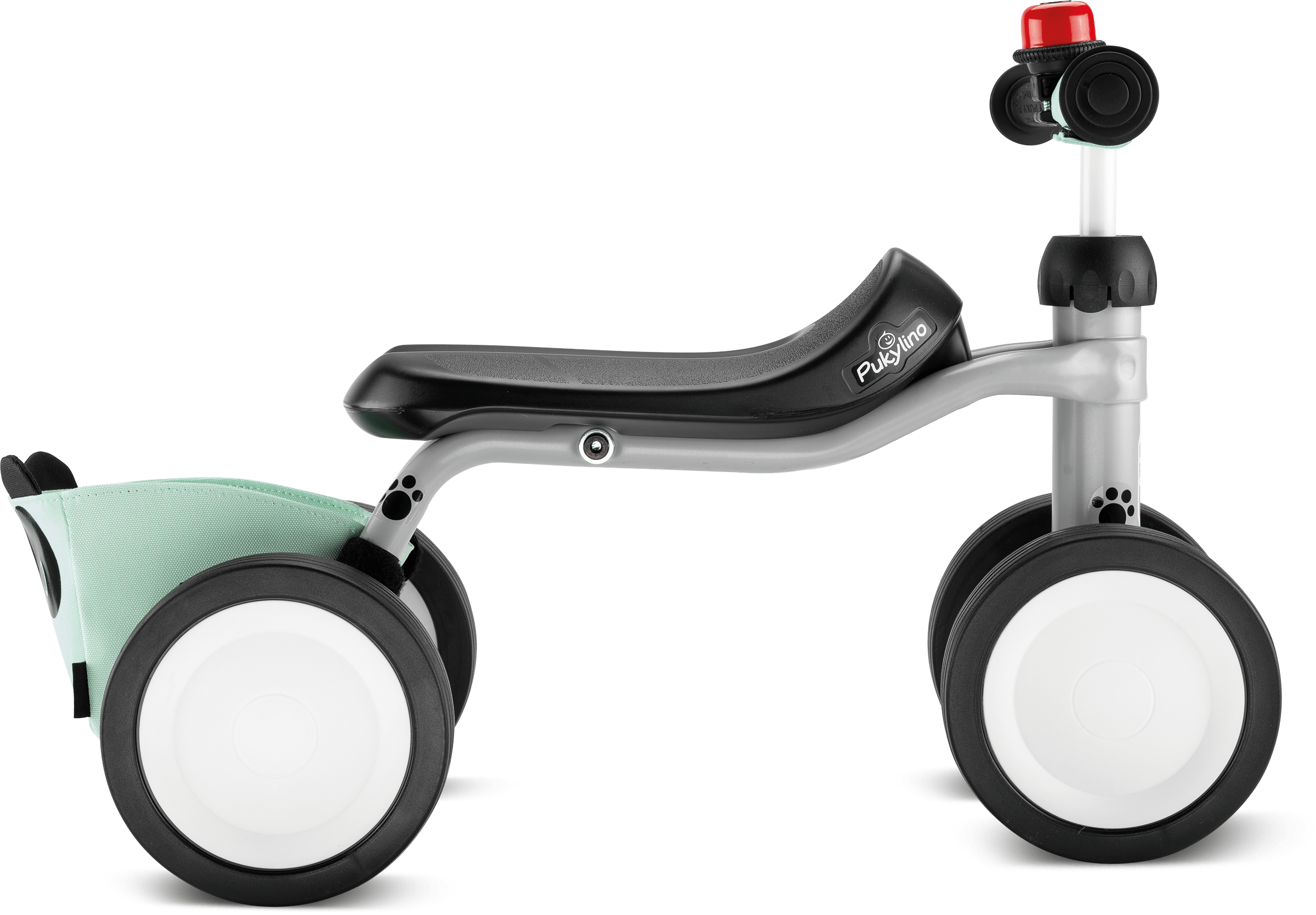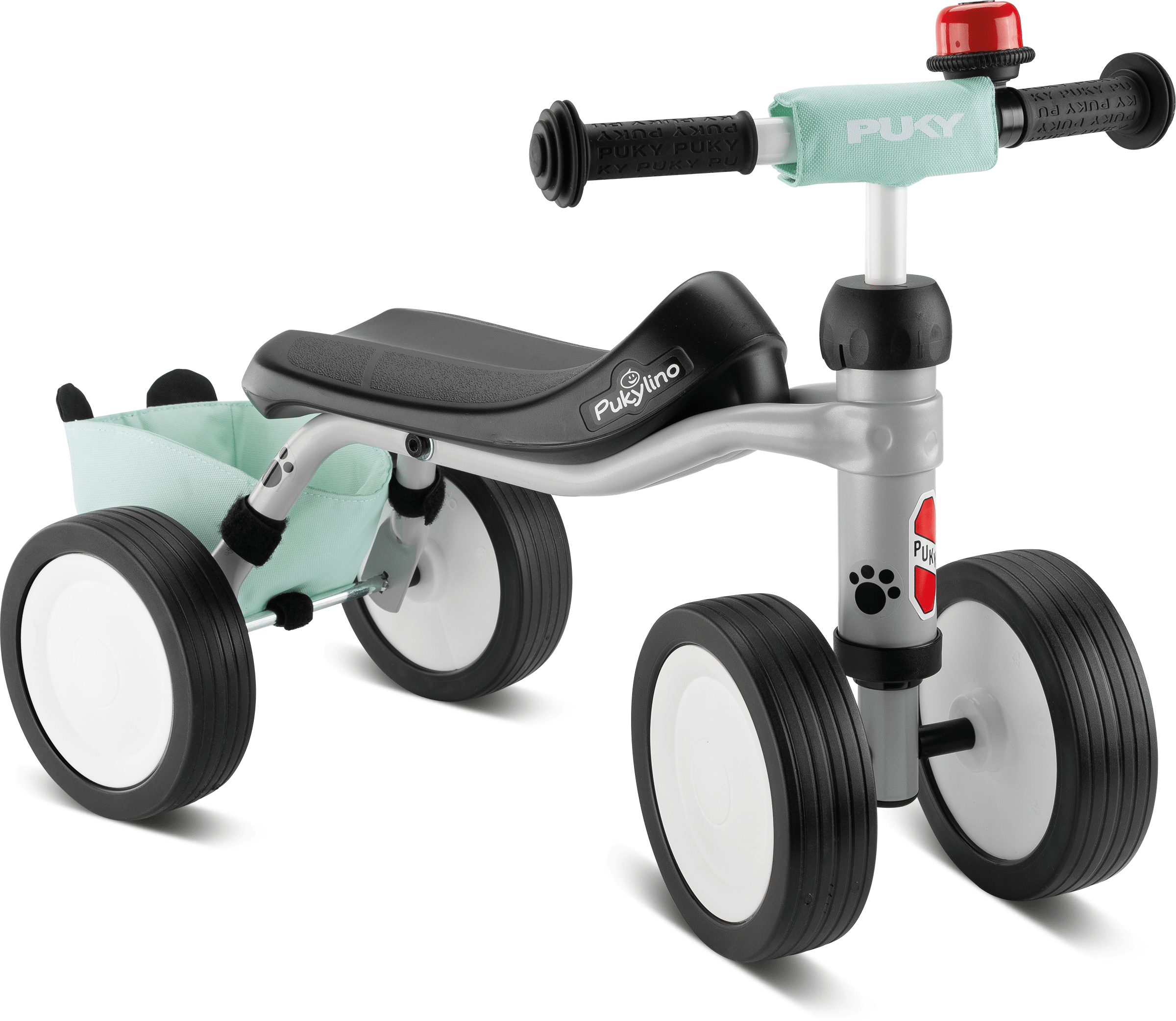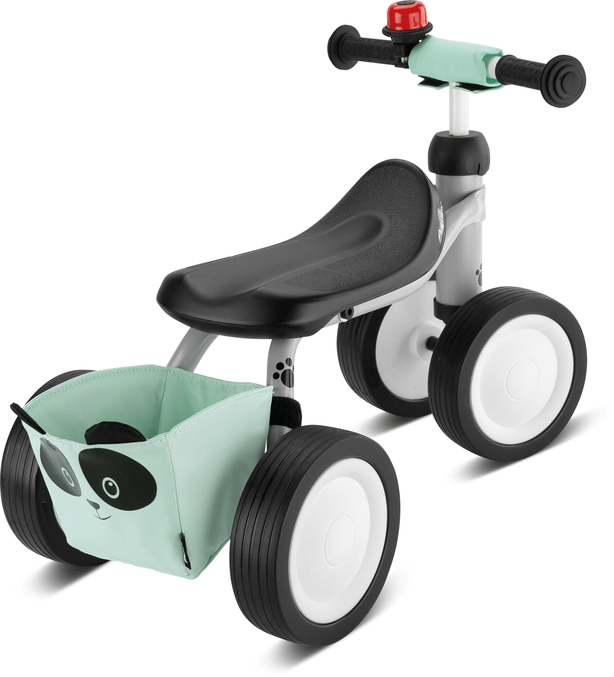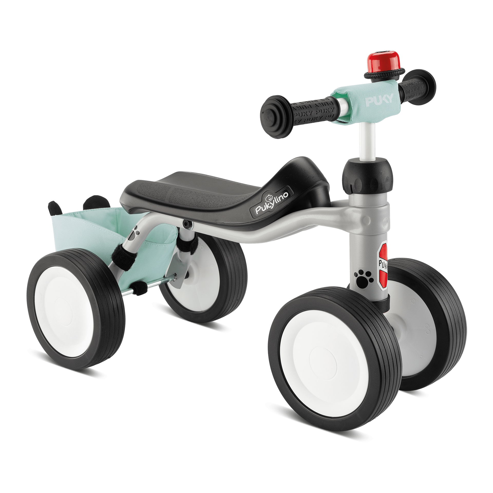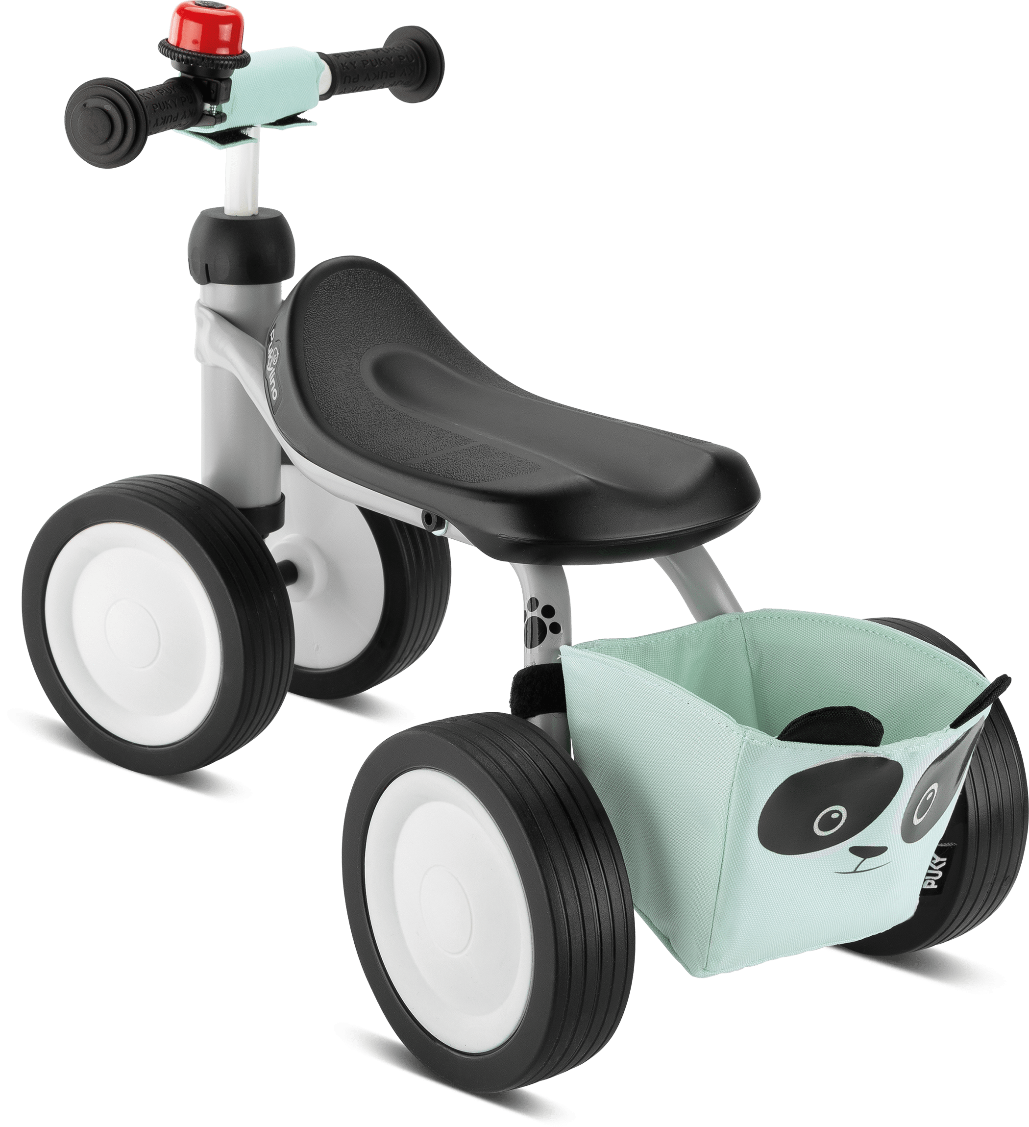 Das PUKYlino ist das erste Fahrzeug für Kinder ab einem Jahr. Vier Räder mit leiser Float-Bereifung und ein ergonomischer Sitz bieten optimale Stabilität für unsere jüngsten Fahrer ab 75 cm Körpergröße. Auf- und Absteigen, Abstoßen und erste Lenkbewegungen werden spielerisch vermittelt und fördern die motorischen Fähigkeiten des Kindes. Zum Schutz ist unser PUKYlino Bundle mit Sicherheitslenkergriffen ausgestattet, welche über große Prallflächen verfügen und seitliches Abrutschen verhindern. Eine Lenkeinschlagsbegrenzung und das PUKY Lenkerpolster runden die Schutzausrüstung ab. Als klassisches Rutschfahrzeug empfehlen wir die Nutzung des PUKYlino in geschlossenen Räumen auf ebenem Untergrund. So können Kinder sicher die ersten Erfahrungen mit einem PUKY Fahrzeug sammeln und bleiben dabei in Sichtweite ihrer Eltern. Als Ergänzung zu unserem klassischen Modell haben wir dem PUKYlino Bundle noch eine Panda Rahmentasche aus wasserabweisendem Polyester sowie eine rote Drehring-Glocke beigefügt.