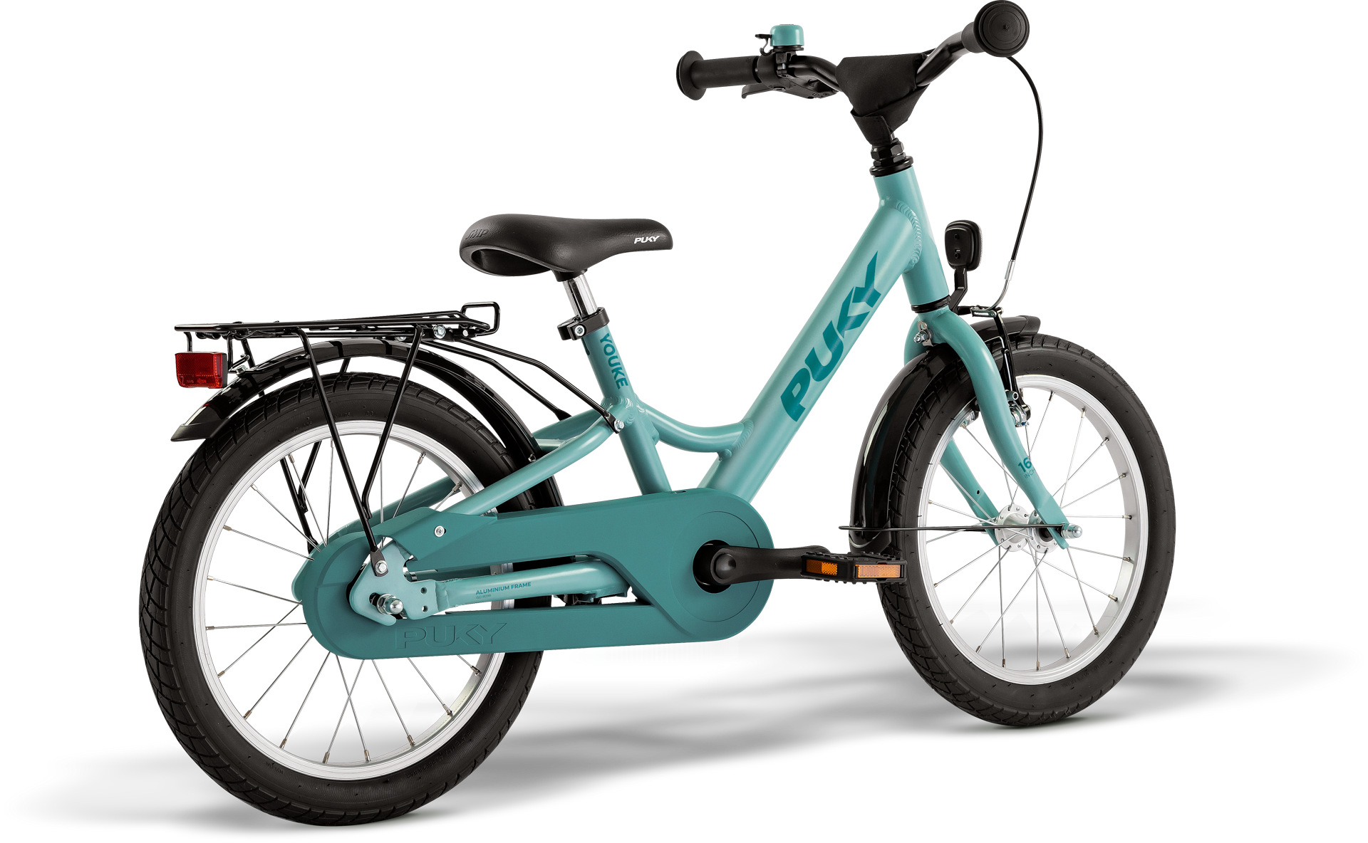 L'ensemble de sécurité PUKY comprend tous les éléments essentiels pour la sécurité de votre enfant : coussin de guidon, sonnette, poignées de guidon sécurisées, réflecteurs avant et arrière, pédales antidérapantes avec troisième réflecteur, un carter de chaîne fermé et une béquille. Le revêtement en poudre du vélo est résistant aux chocs et aux impacts, ainsi qu'aux UV et aux intempéries, ce qui fait du YOUKE 16 un vélo durable et robuste pour de nombreuses années.
