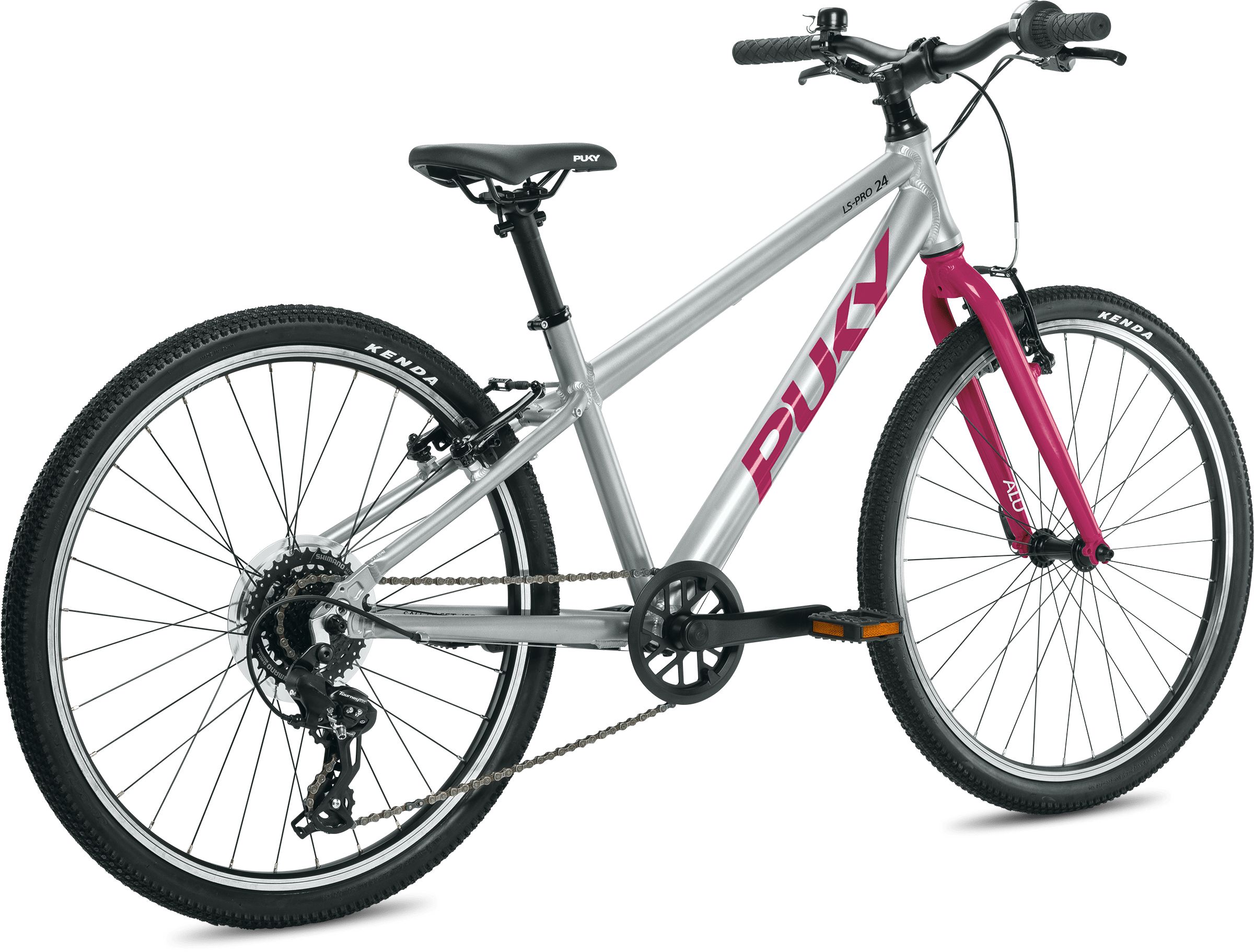 PUKY LS-PRO 24 ist dank einer sportlichen Geometrie und leichten Bauteilen der optimale Alltagsbegleiter. Rahmen, Gabel, Kurbel und Sattelstütze sind komplett aus Aluminium gefertigt. Der leicht zu bedienende Antrieb mit Shimano Tourney 8 Gang Schaltung ist langlebig und sorgt für entspanntes Fahrvergnügen. Kinder ab 8 Jahren und einer Größe von 130 cm kommen mit LS-PRO 24 voll auf ihre Kosten. Gebremst wird der silberne Racer durch die kindgerechten V-Brakes, welche die Bremsleistung optimal dosieren. Ein sportlicher Ahead Vorbau und der höhenverstellbare Sattel bieten viel Spielraum für individuelle Fahrpositionen. Im Lieferumfang des PUYK LS-PRO 24 finden sich neben dem stabilen Seitenständer, eine Glocke, als auch ein Reflektoren-Set. PUKY LS-PRO 24 ist in den Farben silber-blau, silber-orange und silver-berry erhältlich.