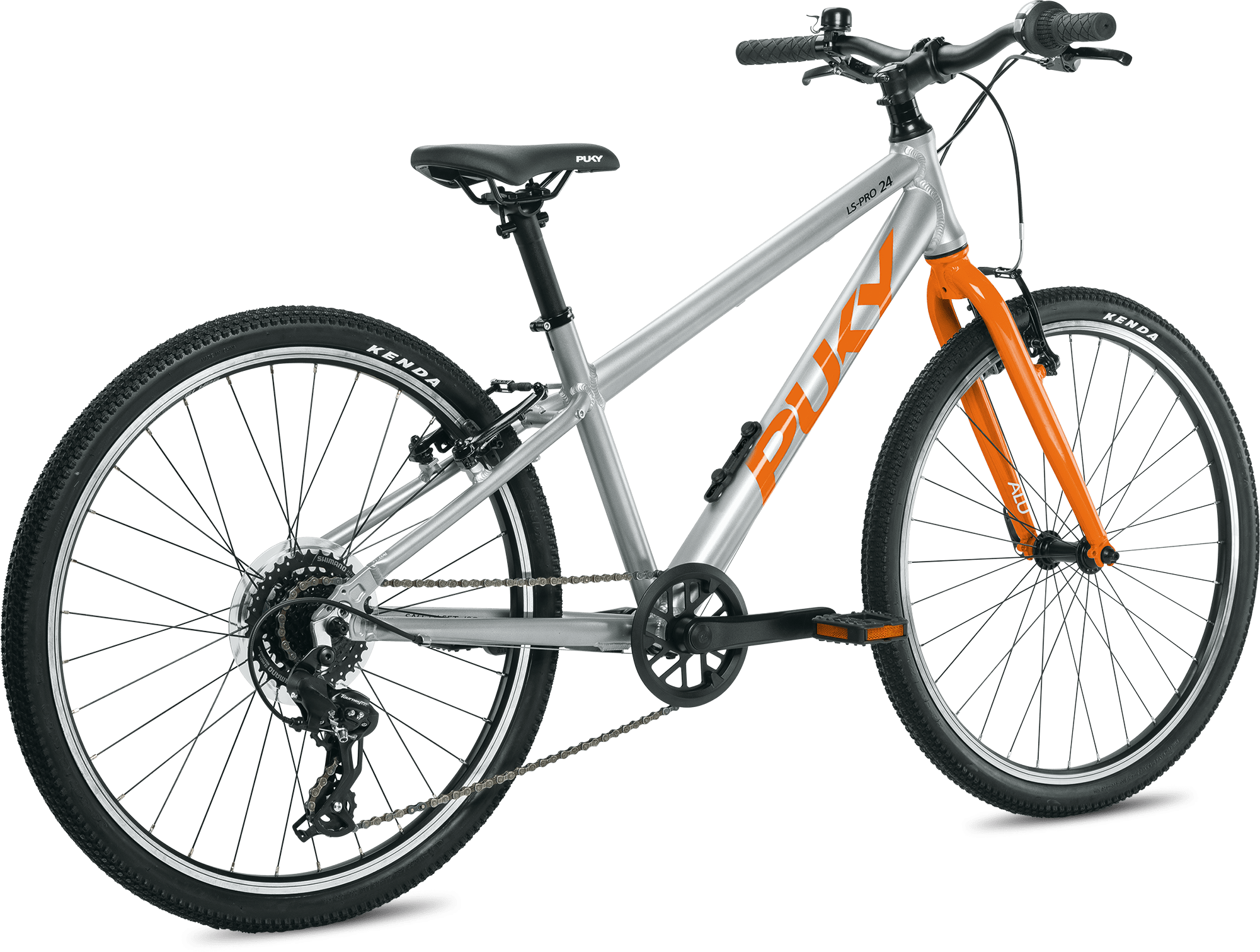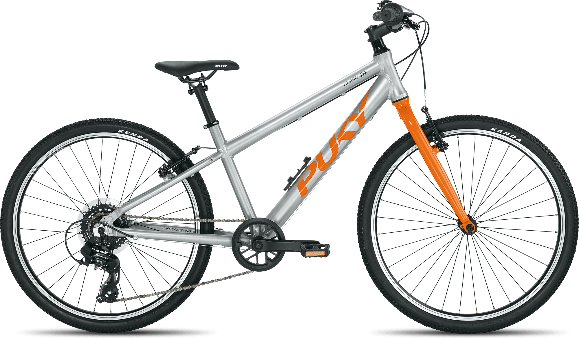 PUKY LS-PRO 24 ist dank einer sportlichen Geometrie und leichten Bauteilen der optimale Alltagsbegleiter. Rahmen, Gabel, Kurbel und Sattelstütze sind komplett aus Aluminium gefertigt. Der leicht zu bedienende Antrieb mit 8-Gang Kettenschaltung ist langlebig und sorgt für entspanntes Fahrvergnügen. Kinder ab 8 Jahren und einer Größe von 130 cm kommen mit LS-PRO 24 voll auf ihre Kosten. Gebremst wird der silberne Racer durch die kindgerechten V-Brakes, welche die Bremsleistung optimal dosieren. Ein sportlicher Ahead Vorbau und der höhenverstellbare Sattel bieten viel Spielraum für individuelle Fahrpositionen. Im Lieferumfang des PUYK LS-PRO 24 finden sich neben dem stabilen Seitenständer, eine Glocke, als auch ein Reflektoren-Set. PUKY LS-PRO 24 ist in den Farben silber-blau, silber-orange und silver-berry erhältlich.