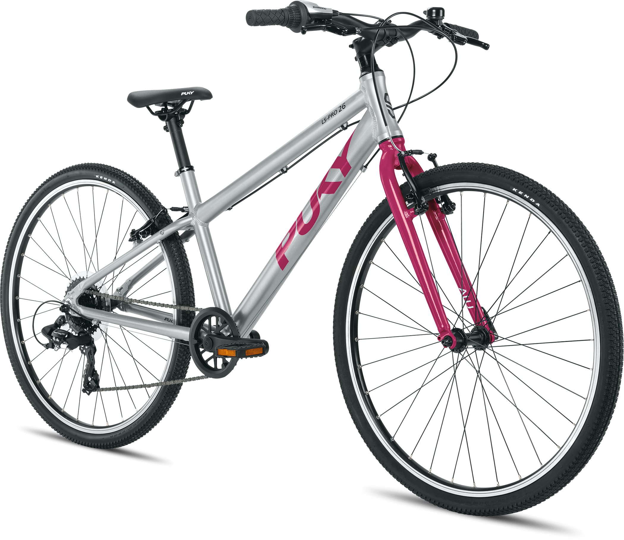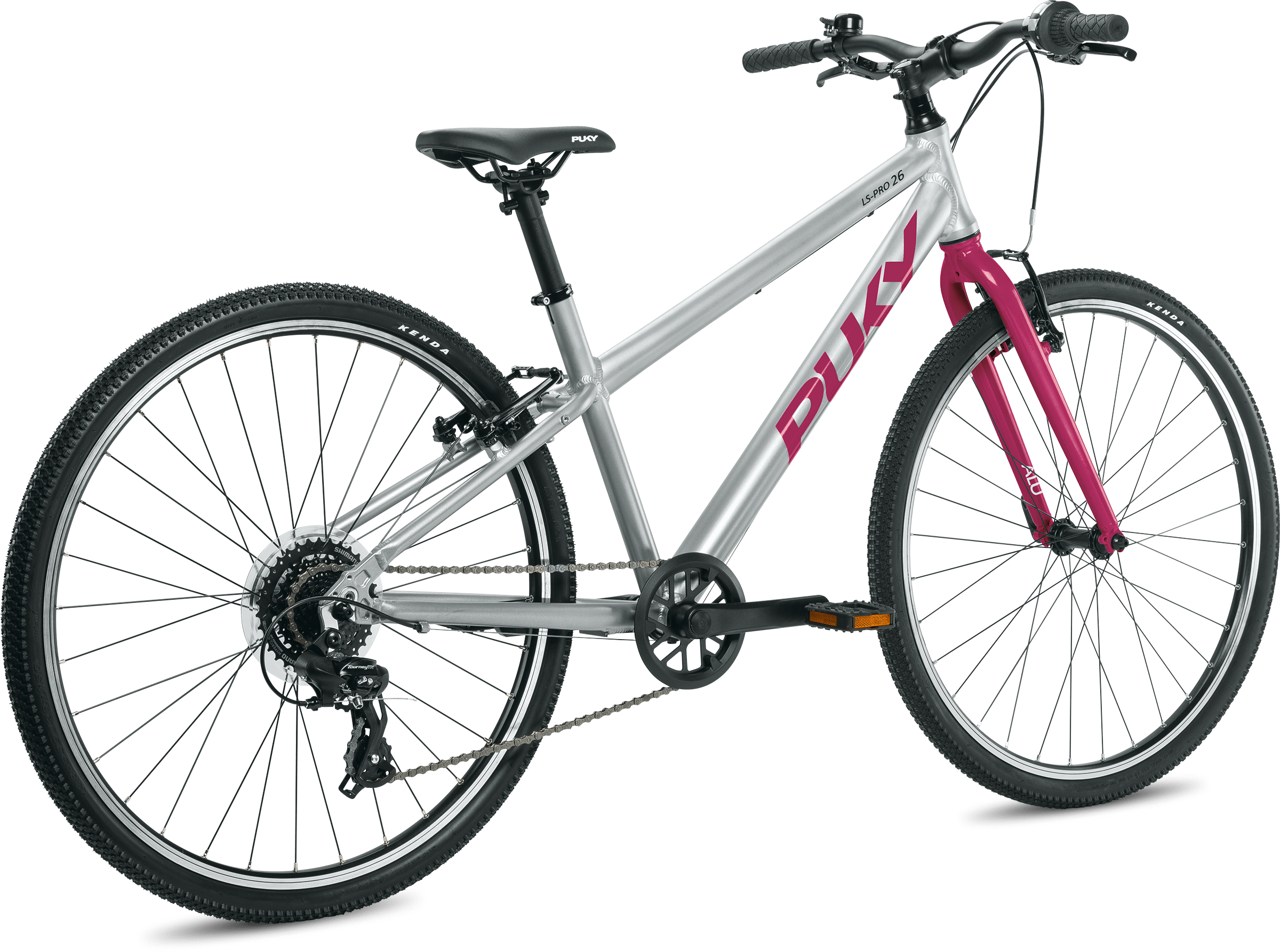 PUKY LS-PRO steht nicht nur für Lightweight Series, sondern auch für Spaß am Fahrradfahren. Und der ist mit unserem Topmodell für Kinder ab 10 Jahren garantiert. Mit gewichtsoptimierten Komponenten wie Rahmen, Gabel und vielen weiteren, bringt das LS-PRO 26 gerade einmal auf 9,6 kg (ohne Pedale) auf die Waage. In Kombination mit der SHIMANO 8-Gang Kettenschaltung und dem intuitiven 1-Fach Antrieb, steht einem erfolgreichen Wettrennen unter Freunden nichts im Wege. Gebremst wir das LS-PRO 26 über zwei V-Brakes, welche das Bike zuverlässig zum Stehen bringen. Da es ab und zu mal etwas wilder zugehen kann, ist der silberne Rahmen mit einer stoßfesten Pulverbeschichtung versehen, die strapazierfähig, wetterbeständig und absolut schadstofffrei ist. Im Lieferumfang des LS-PRO 26 ist ein Reflektorenset, ein Seitenständer sowie eine Glocke enthalten.